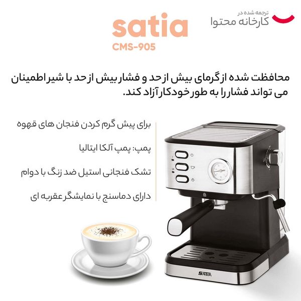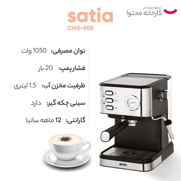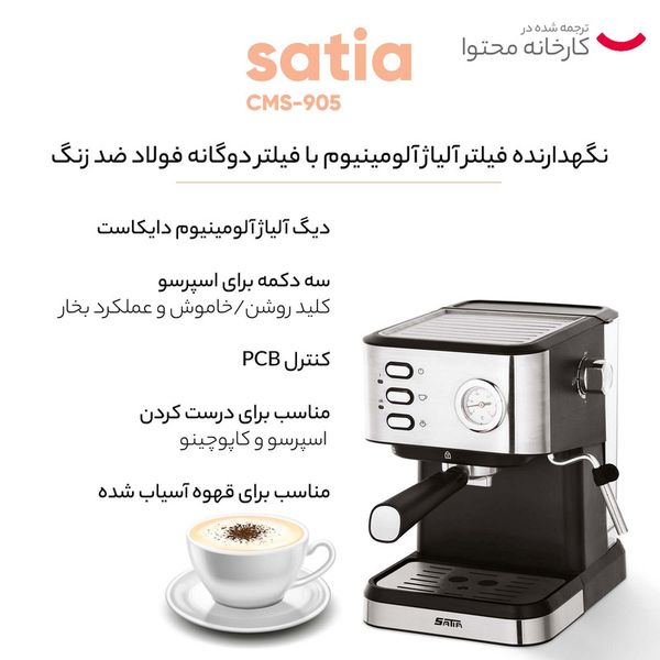 خرید اینترنتی اسپرسو ساز ساتیا مدل CMS-905 با رنگبندی استیل به همراه مقایسه، بررسی مشخصات و لیست قیمت امروز در فروشگاه اینترنتی دیجیفای
